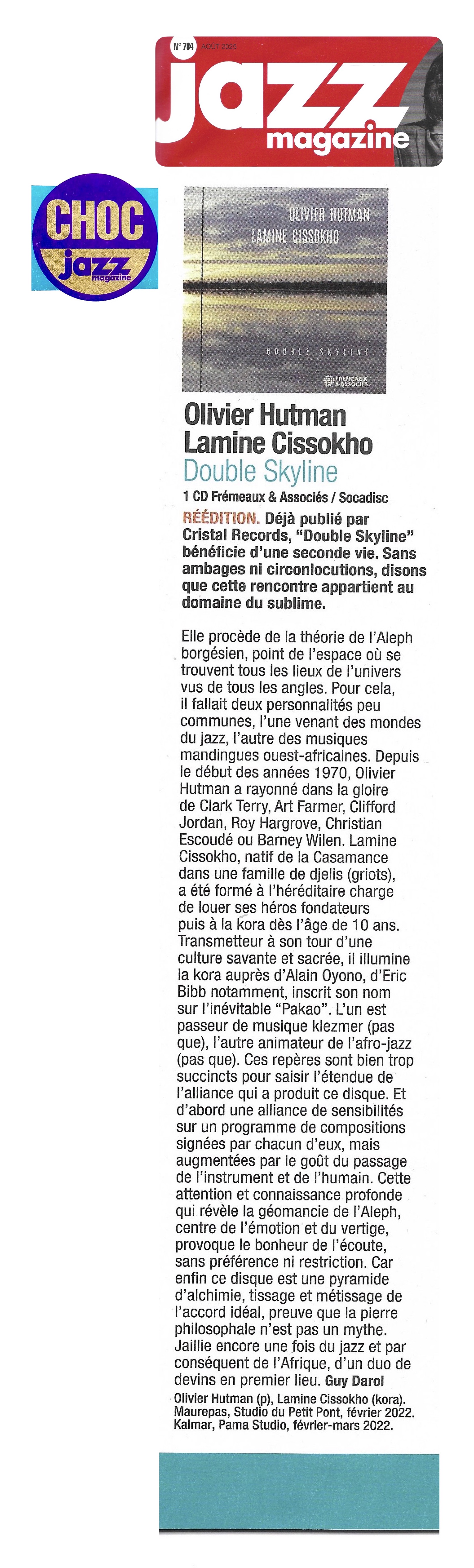 Paru initialement sur le label Cristal Records en 2023, l’album “Double Skyline”, une collaboration avec le joueur de kora installé en Suède Lamine Cissokho a été réédité en 2025 sur le label Frémeaux & Associés et vient d’obtenir le “CHOC” de Jazz Magazine.